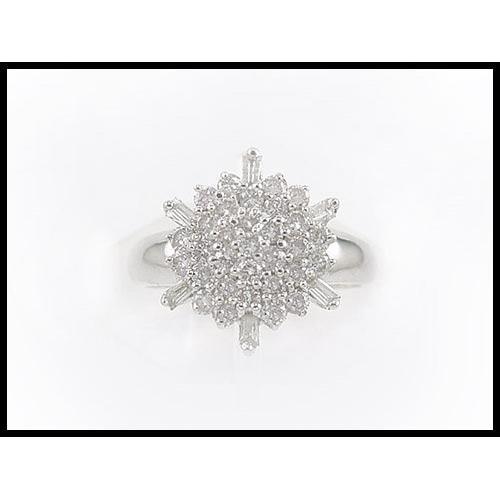 Poor photos do not tell the story of this spectacular 18K white gold ring with over one carat of sparkling diamonds. It is candy for the eye when worn. The design is inspired by a snowflake. It measures 15mm x 13mm (5/8" x 1/2"). Size 7 is easy to change.