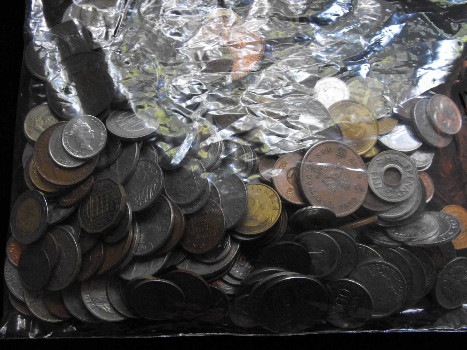 OVER 2 POUNDS OF FOREIGN COINS HUNDREDS OF COINS