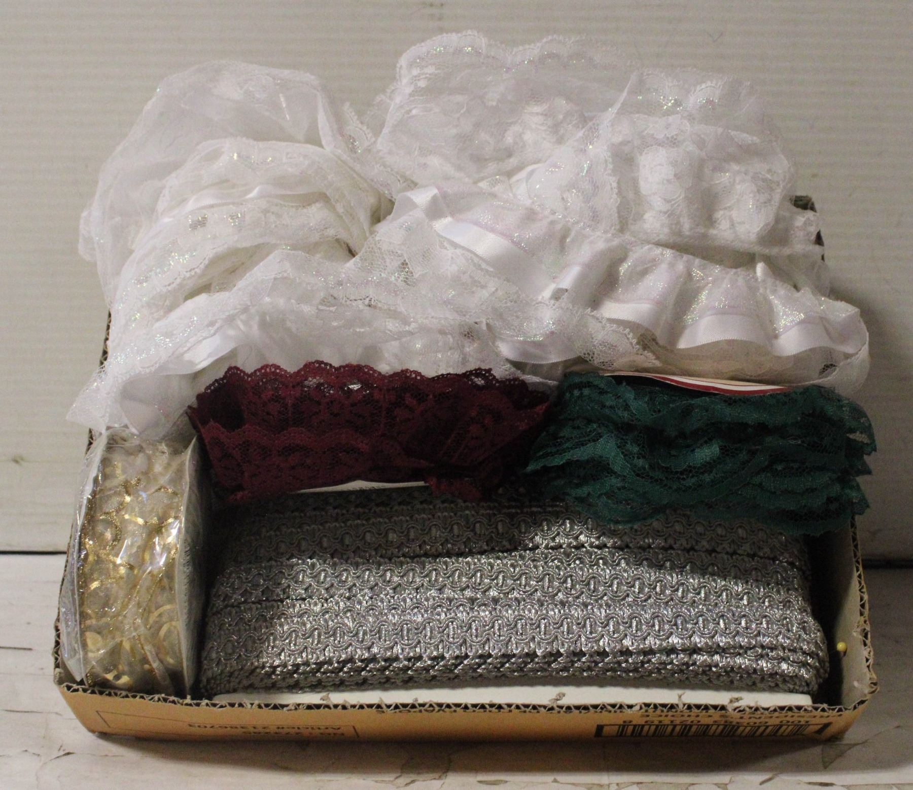 WHITE LACE, & GREEN, RED & GOLD LACE