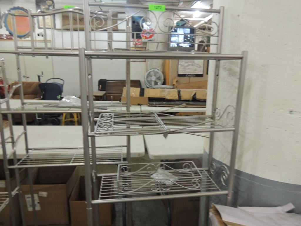 BATHROOM STORAGE RACK, DECORATIVE RACK, METAL RACK, STORAGE, BATHROOM STORAGE, AS SHOWN SEE PHOTO FOR MORE DETAILS.