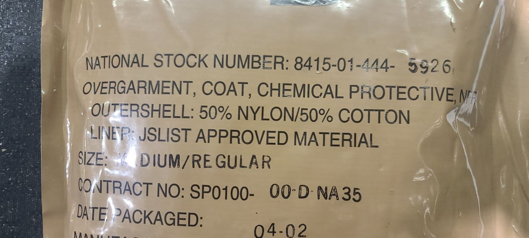 OVERGARMENT, COAT CHEM PROTECTIVE NFR D SIZE MED-REG