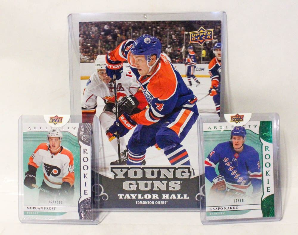 OVERSIZED HOCKEY CARD + 2 ROOKIE HOCKEY CARDS