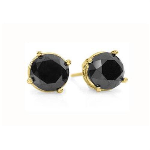 GENUINE SOLITAIRE 1.0 ctw BLACK DIAMOND STUD EARRINGS SET IN 14KT YELLOW GOLD