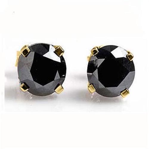 GENUINE SOLITAIRE 1/2 ctw BLACK DIAMOND STUD EARRINGS SET IN 14KT YELLOW GOLD