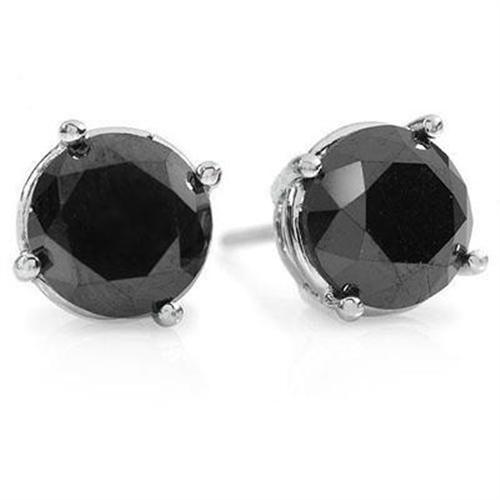 GENUINE SOLITAIRE 2.0 ctw BLACK DIAMOND STUD EARRINGS SET IN 14KT WHITE GOLD