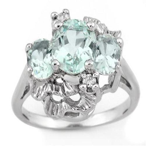 GENUINE 3.06 ctw DIAMOND & AQUAMARINE LADIES RING IN 10K WHITE GOLD