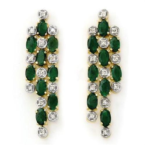 NEW, 4.03 ctw EMERALD & DIAMOND DANGLE EARRINGS IN 14K YELLOW GOLD