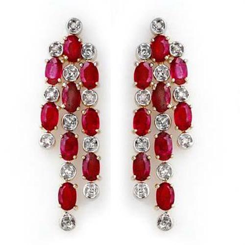 GENUINE 4.03 ctw RUBY & DIAMOND DANGLE EARRINGS IN 14KT YELLOW GOLD