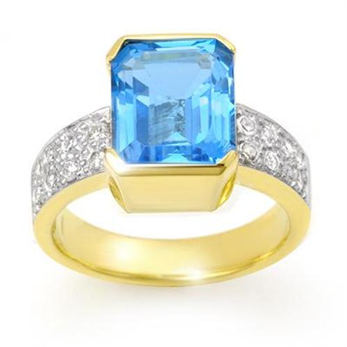 BRAND NEW , GENUINE 7.26 ctw BLUE TOPAZ & DIAMOND RING IN 14KT YELLOW GOLD