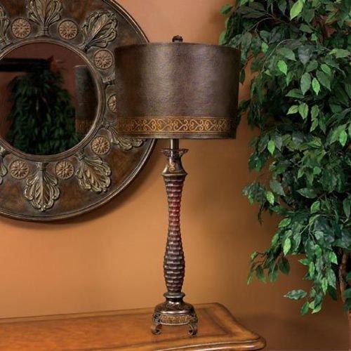 Casual simplicity. A designers delight with matte oxblood bronze style base with embossed leather shade. A view of the this piece reveals the incredible craftsmanship. Imagine the artistry and time taken create such a piece. These piece is absolutely perfect & we are offering this piece at a fraction of the retail cost...you can be assured that this table lamp will not go unnoticed. Beautiful solid heavy constructed lamp to last for years!A view of the this piece reveals its incredible craftsmanship. DON'T MISS OUT ON THIS GORGEOUS PIECE! PERFECT IN EVERY WAY, PLEASE EMAIL US FOR AN ESTIMATED SHIPPING PRICE AND DON'T FORGET TO CHECK OUT OUR 400+ ITEMS LISTED!