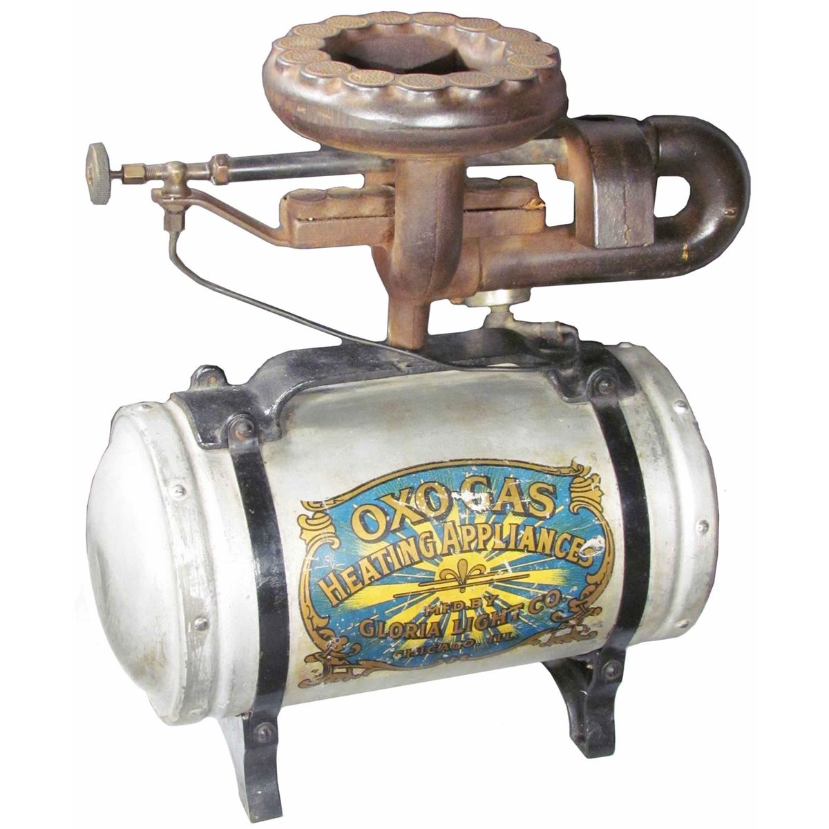 OXO Gas Heating Appliance Portable Cook Stove. Mfg. by Gloria Light Co. Chicago. Very good original condition. 14 X 16 1/2 X 7 inches.