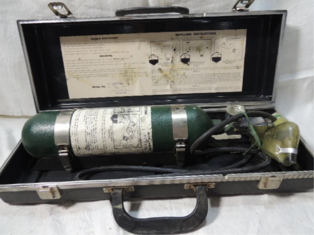 OXYGEN TANK AND MASK IN CASE. AS SHOWN. SEE PHOTO FOR MORE DETAILS.
