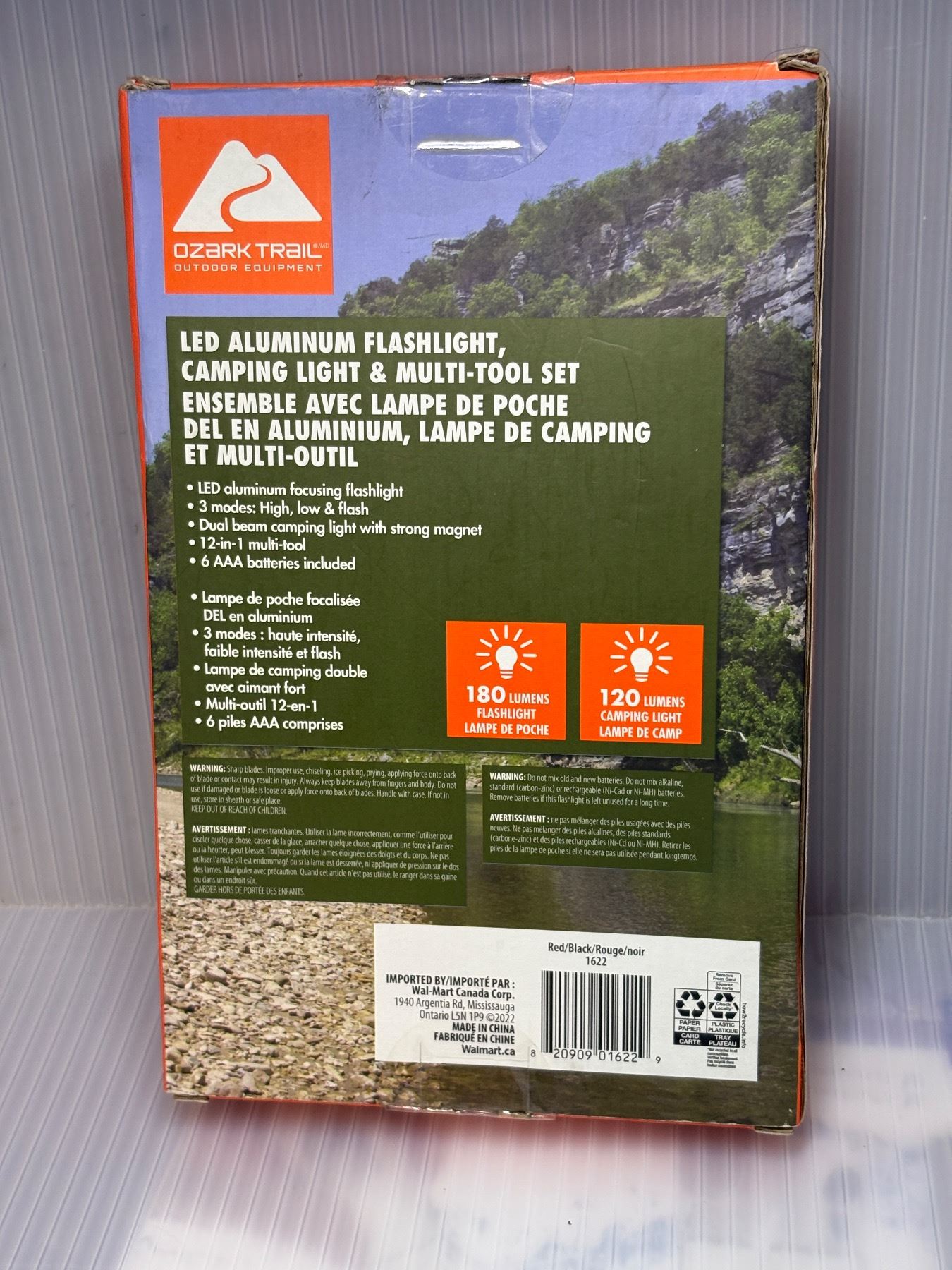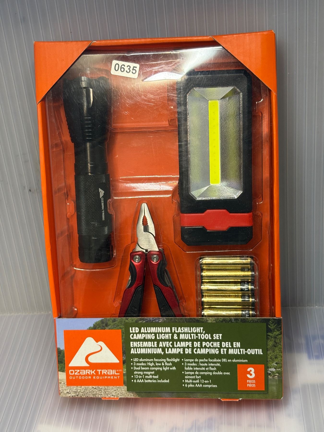 OZARK trail 3 pc camping set incl. Flash light, Camping light, multitool kit with battery