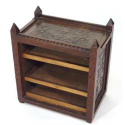 Oak Arts and Crafts music cabinet, fitted three sliding drawers carved with a 'Tree of Paradise' design, 58cm high