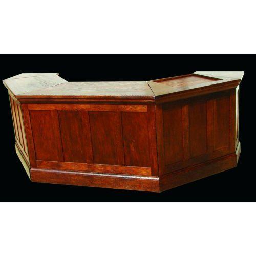 Beautiful Oak Bank Counter. Excellent Refinished Condition. 10 feet wide, 4 feet deep and 39 inches tall.