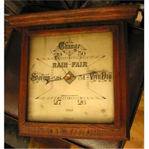 Barometer in oak case with an engraved silver dial. R Bond and Co, Darlington. Height -11", depth - 3". Approx 1880.