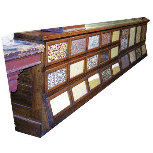 Oak Bean Counter with 23 drawers. Complete with original hardware. Excellent original condition. 145 X 34 X 30 inches.
