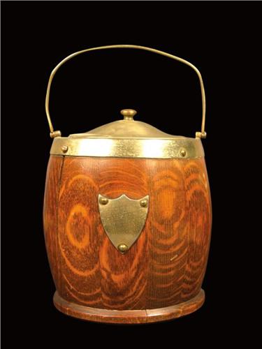 Oak Biscuit Jar shield from Bideford Div. dated July 7, 1938. Excellent original condition. 6 1/2 inches tall.