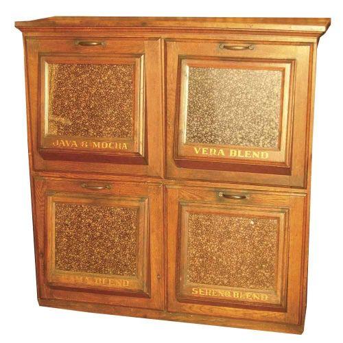Oak Coffee Bean Counter. Original stenciling. Very good original condition. 47 X 48 X 20 inches.