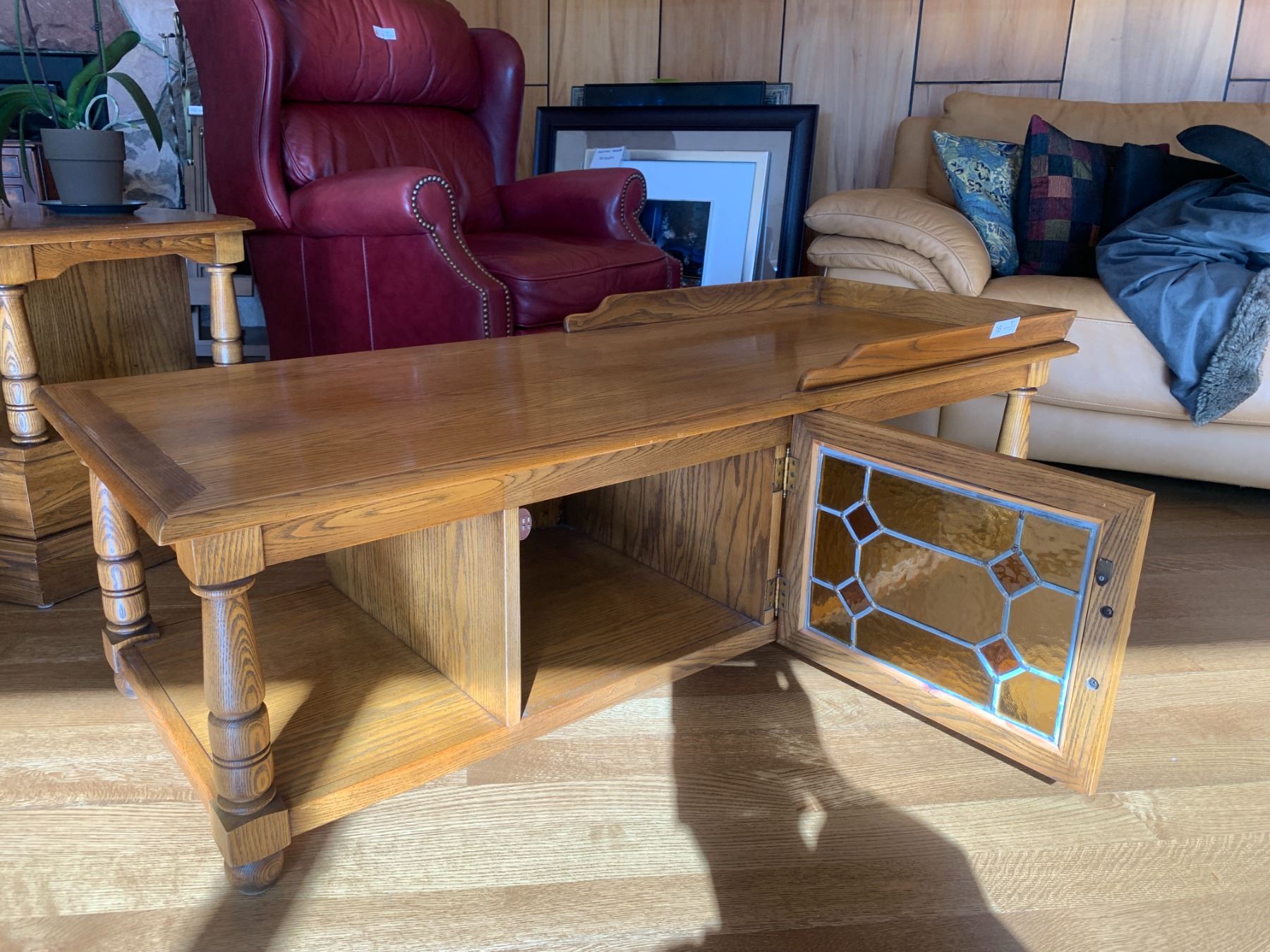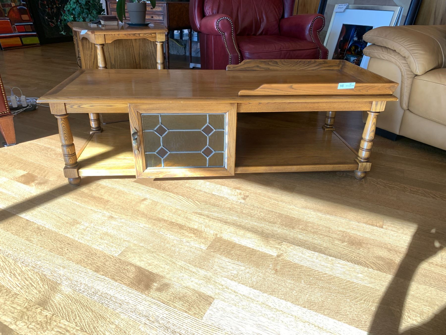 Oak Coffee Table With Stain Glass Door - 56L x 21D x 16H