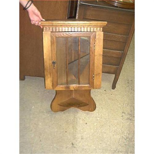Oak Corner Shelf Cabinet with 2 shelf's inside, nice glass door with pull. Take a good look, real nice one. Great item for small space area.</em></td>