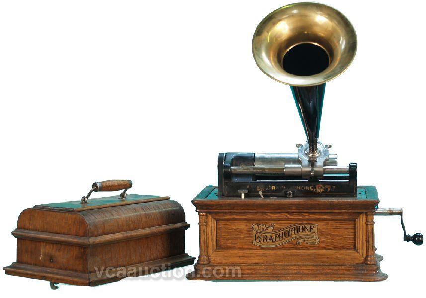 Oak Countertop Graphophone MFG by Columbia Phonograph Co. New York-London-Paris-Berlin w/ crank & horn