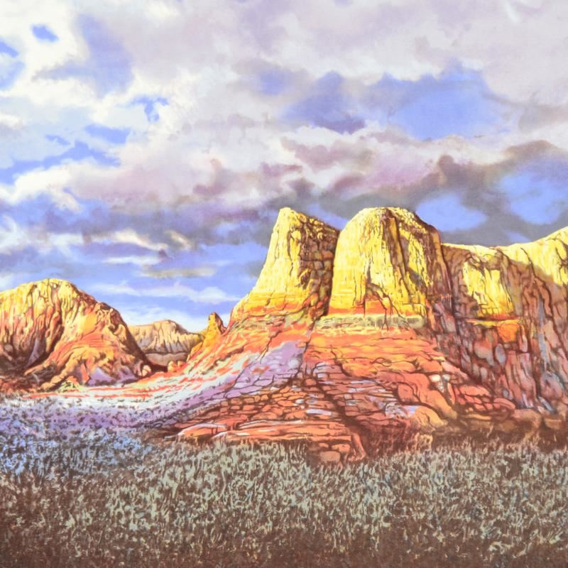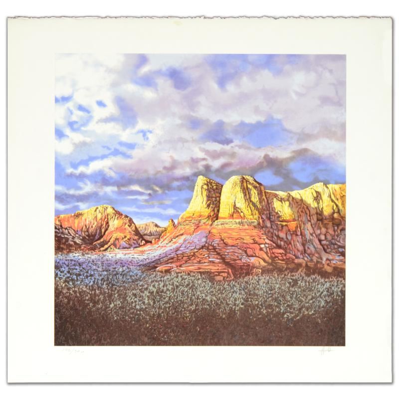 "Oak Creek Sunset" is a limited edition lithograph on paper by Jorge Braun Tarallo, numbered and hand signed by the artist! Includes Certificate of Authenticity! Measures approx. 24.5" x 23" (with border), 18.5" x 18.5" (image).