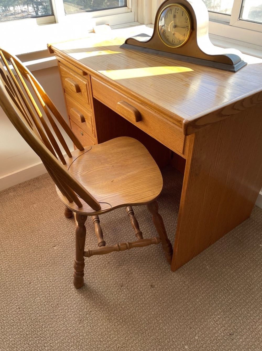 Oak desk with pull out writing surface, with oak chair. From the lifetime collection.