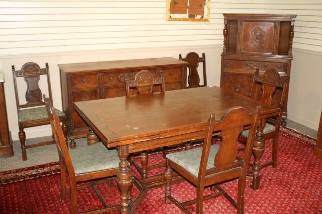 Oak Dining Set, China Cabinet, Buffet and 6 Chairs