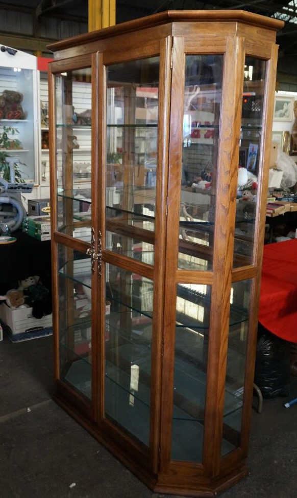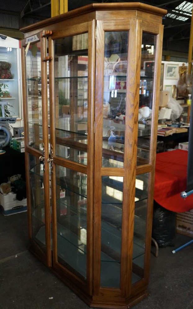 Oak Display Cabinet Great Condition 4 Glass Shelves Approx. 77 x 49 x 17