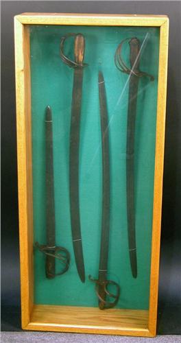 Oak Display Case W/ Metal Swords 19"x6"x43"