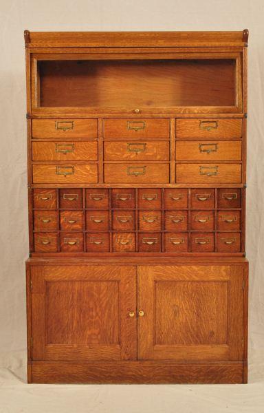 Oak "Globe" Four Stack File Cabinet, Measures 17" x 42" x 66"