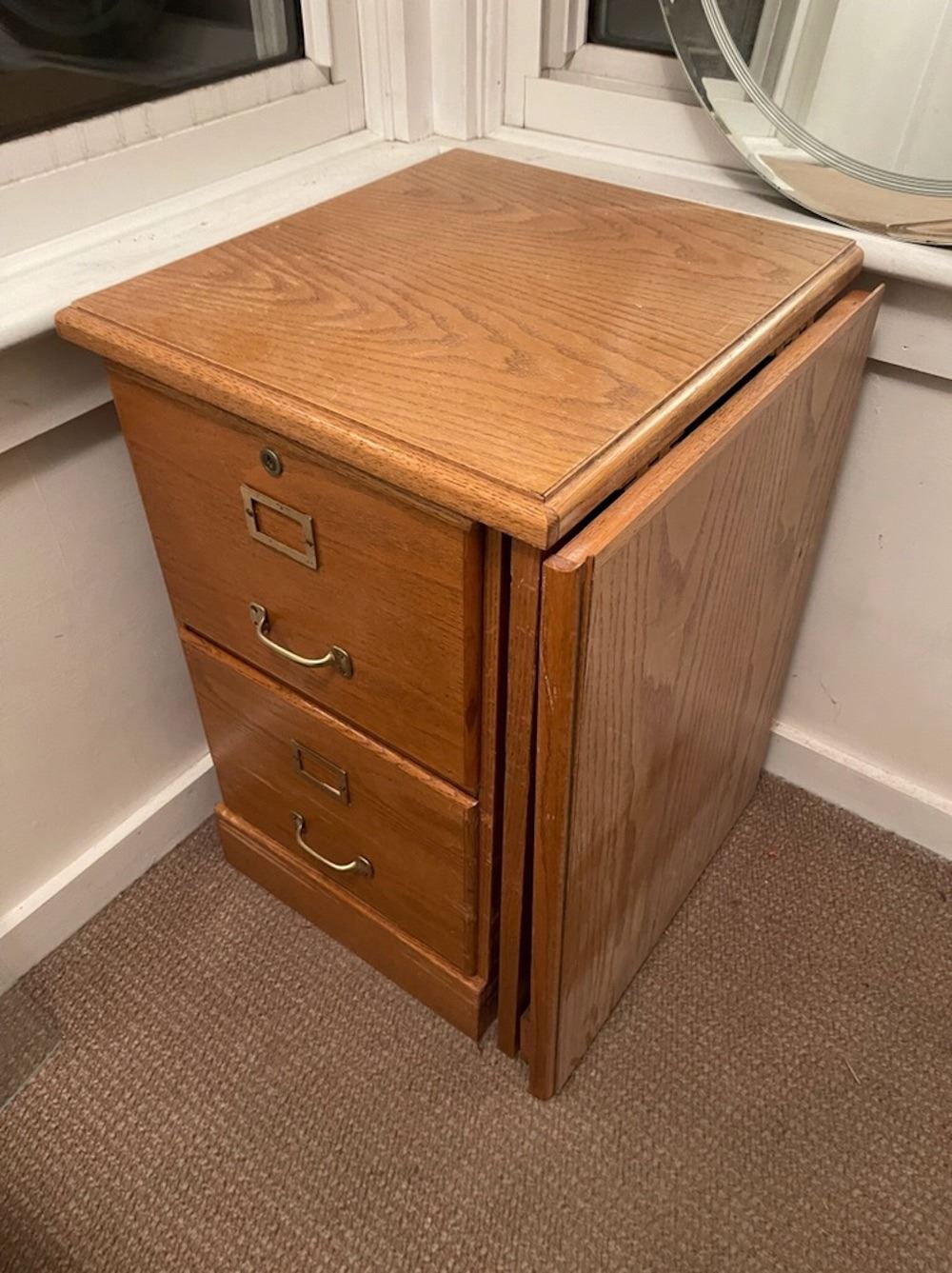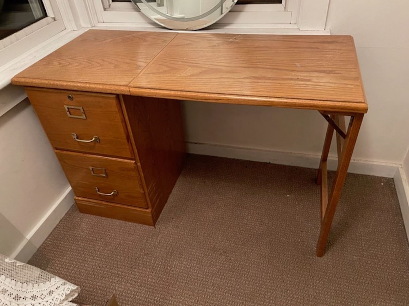 Oak File Cabinet with fold out desk. From the lifetime collection