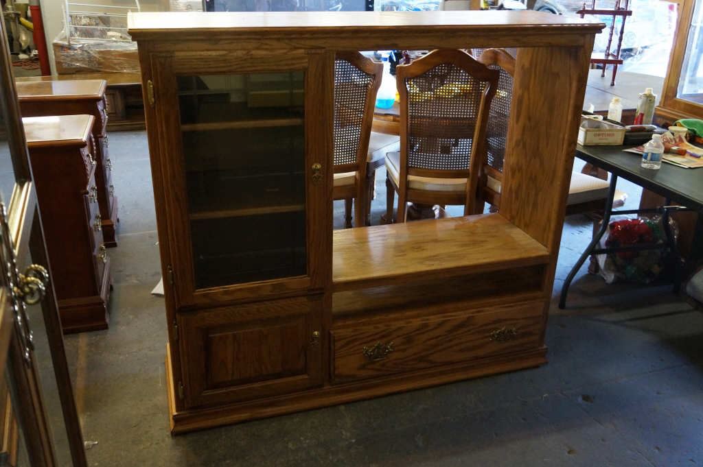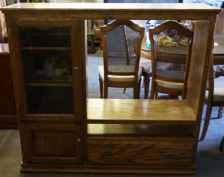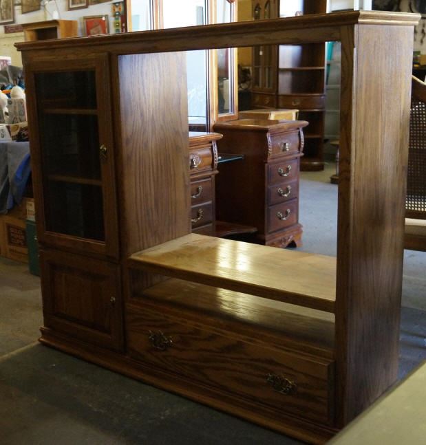 Oak Finish Entertainment Center 2 Cabinet 1 Drawer Approx. 49 x 54 x 17