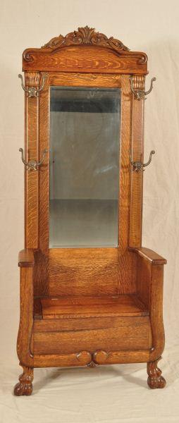 Oak Hall Tree With Claw Feet. Measures 18" x 33" x 84"