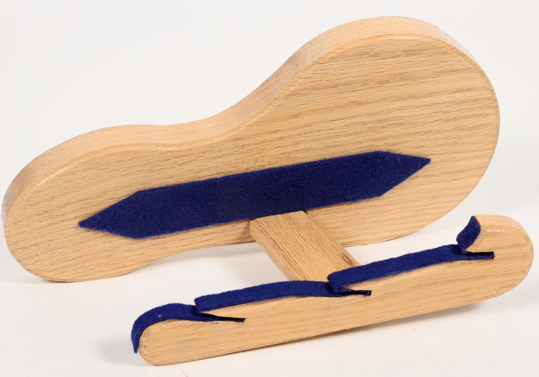 This oak knife stand will hold three of your favorite display knives. 11 in. X 4 in. 5.25 in. Please see photo for details.