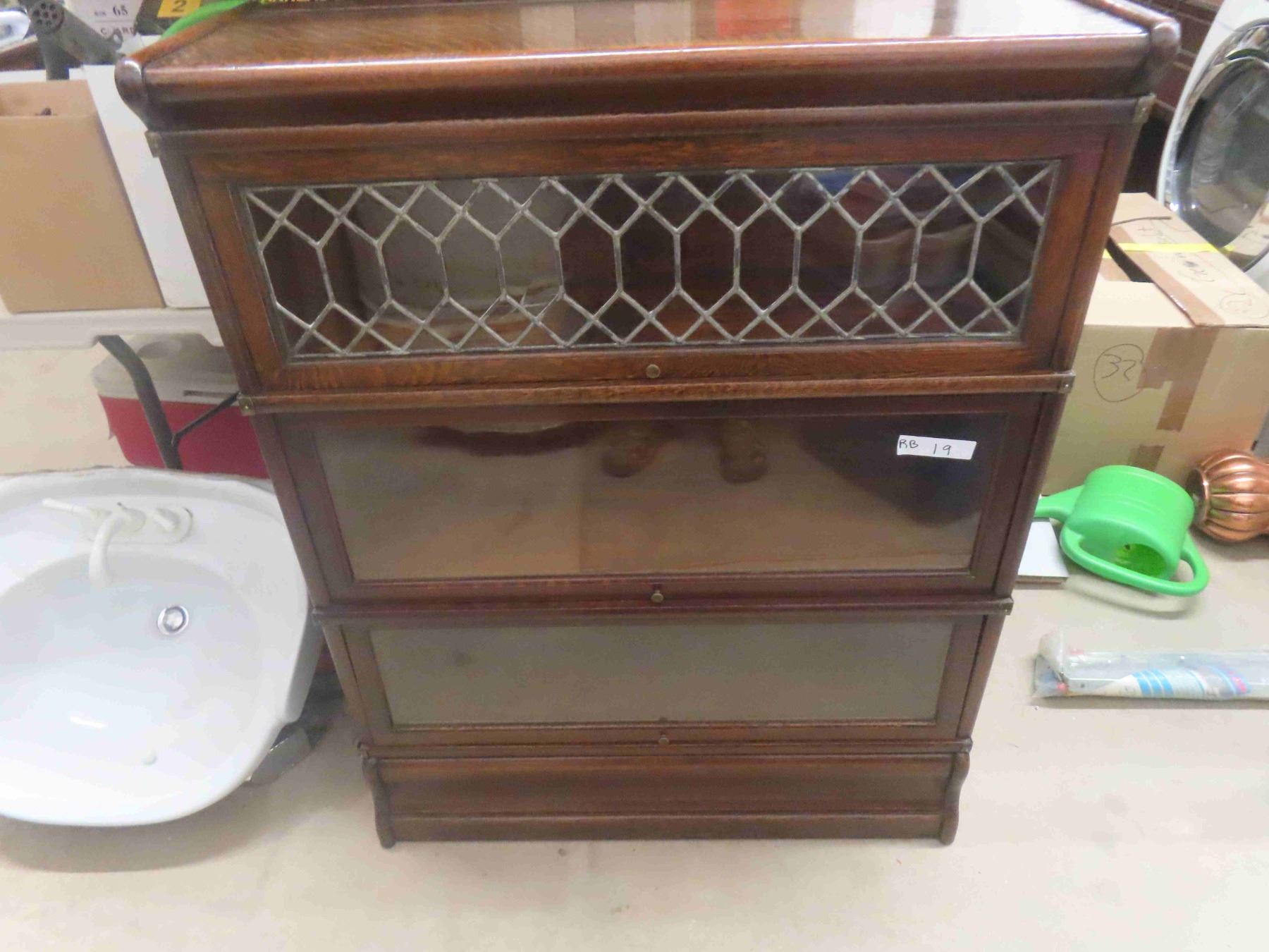 Oak Lawyers Stacking Bookcase (3 Stacks) Plus Top and Bottom. 1 Leaded Glass Pane. 44'' x 34'' x 12''