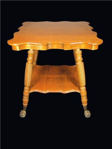 Oak Parlor Table with spiral legs and claw and glass ball feet. Excellent original finish. 28 X 28 X 30 inches.