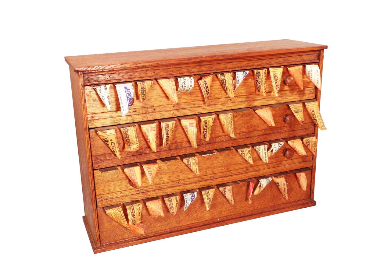 Oak Pharmaceutical Label Dispenser. Excellent condition with labels.