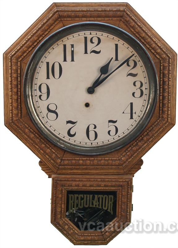 Oak Regulator Clock w/ Key C. 1910 - Restored