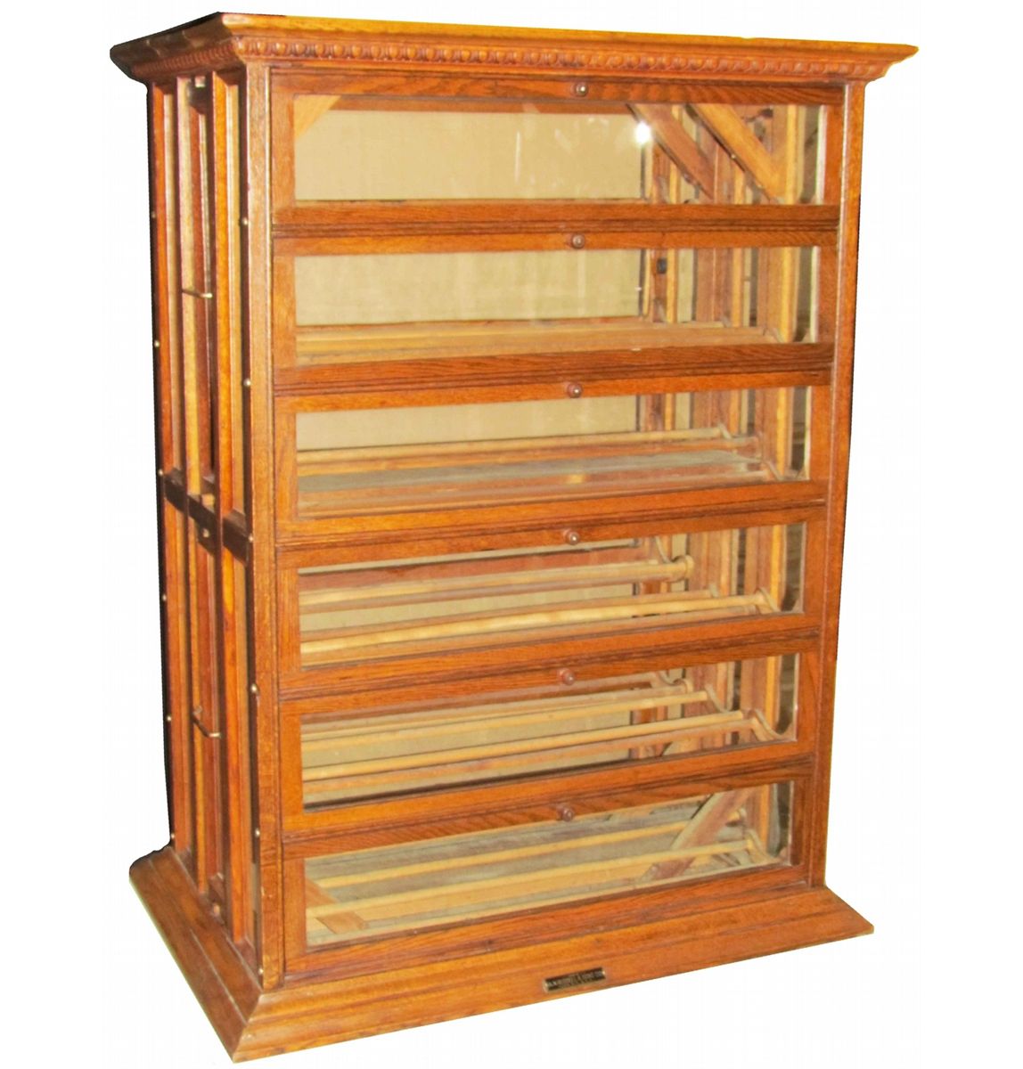 Oak Ribbon Cabinet. Made by A.N. Russell & Sons. Co. Ilion, NY. 3 tier cabinet. Excellent condition. 28 1/2 X 38 X 18 1/2 inches.