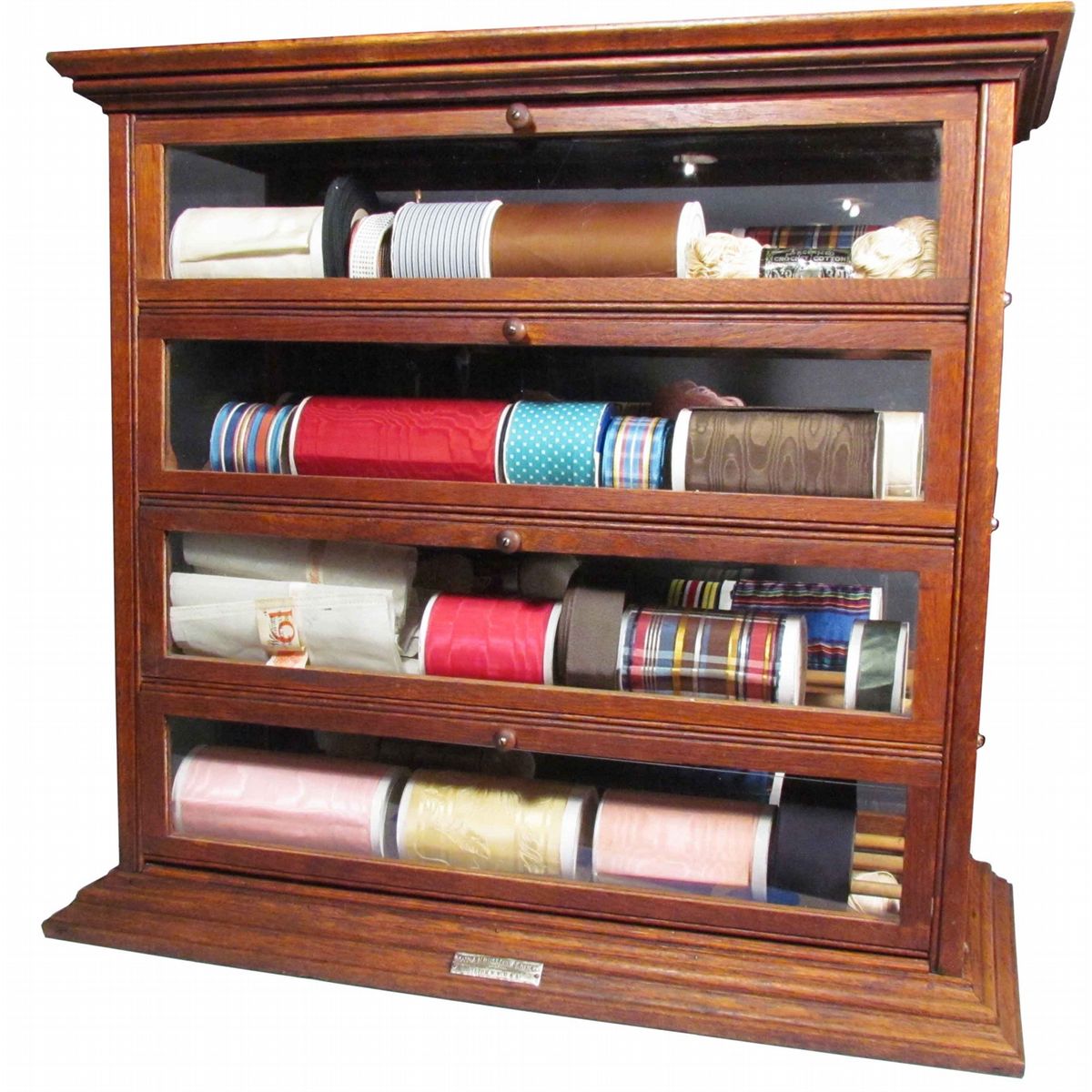 Oak Ribbon Store Display Cabinet. A.N. Russell & Sons maker. Excellent original condition. 28 X 26 1/2 X 14 1/4 inches.