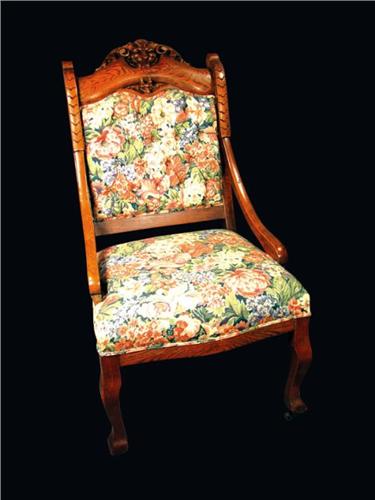 Oak Side Chair with Hungry Lion biting back of chair. Excellent condition. 39 X 19 inches.
