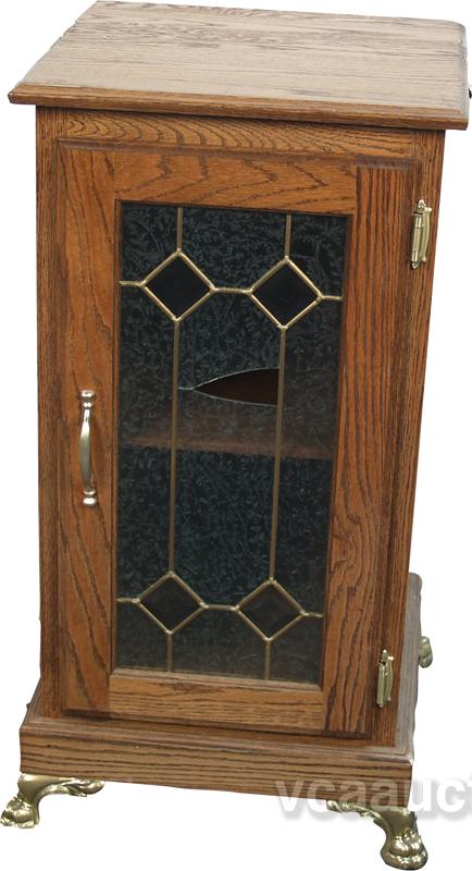 Oak Slot Machine Stand w/ Fancy Glass Front Door (cracked piece) - 17" x 17" x 33" tall