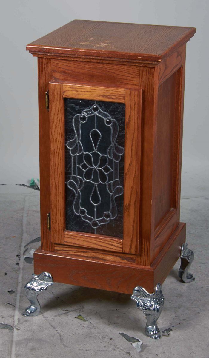 Leaded cabinet door w/ decorative nickel feet Condition Excellent Size 37" x 17" x 17"