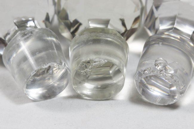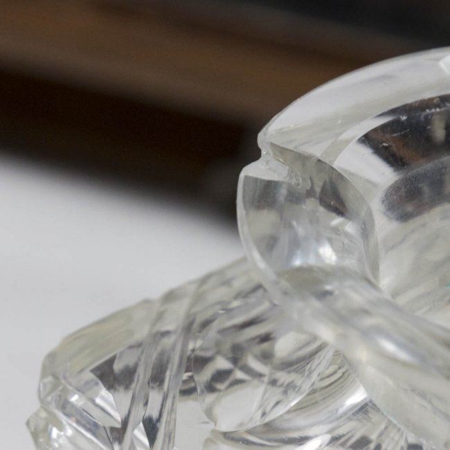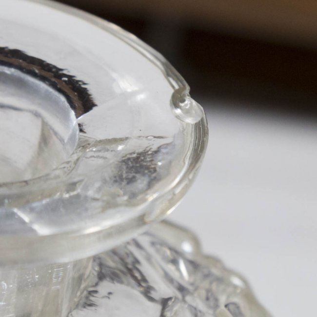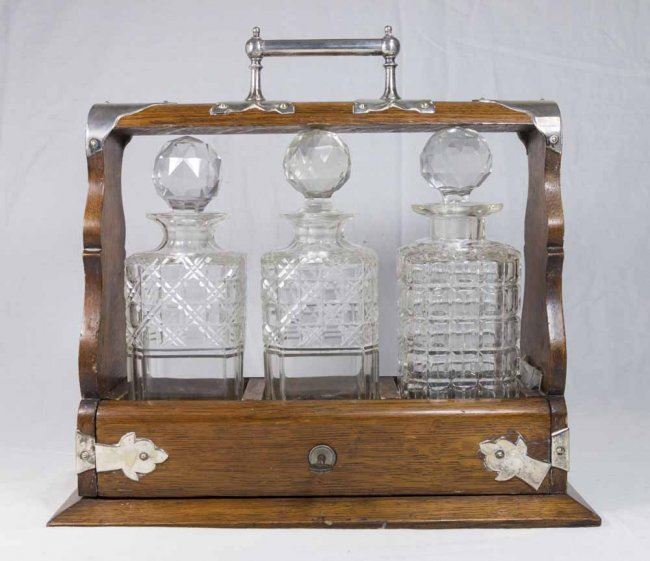 With key. (4155) Chip on edge of one bottle. Flake on interior of stoppers.