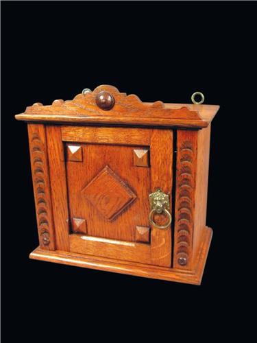 Oak Wall Cabinet w/shelf and lions head pull. Excellent refinished condition. 12 X 12 X 7 1/2 inches.