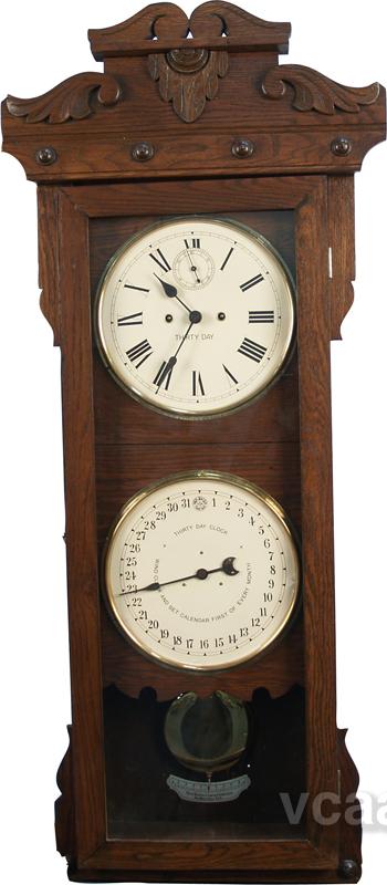 Oak Wall Mount Thirty Day Calendar Clock by New Haven USA. all original - 20" x 44"
