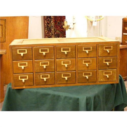 Oak card file cabinet marked Globe Wiesinki. measures33" wide 17" deep and 13.25" tall. With an unfinished top.