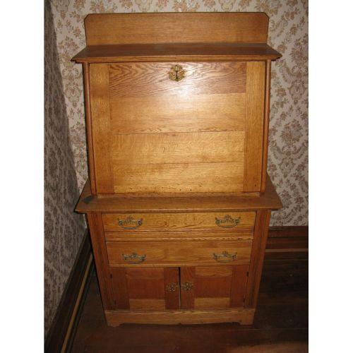 Oak dropfront desk w/drawers and doors and pigeonholes, 32" x 55"